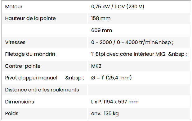 - Cône Morse N° 2 sur la broche et la contre-pointe.